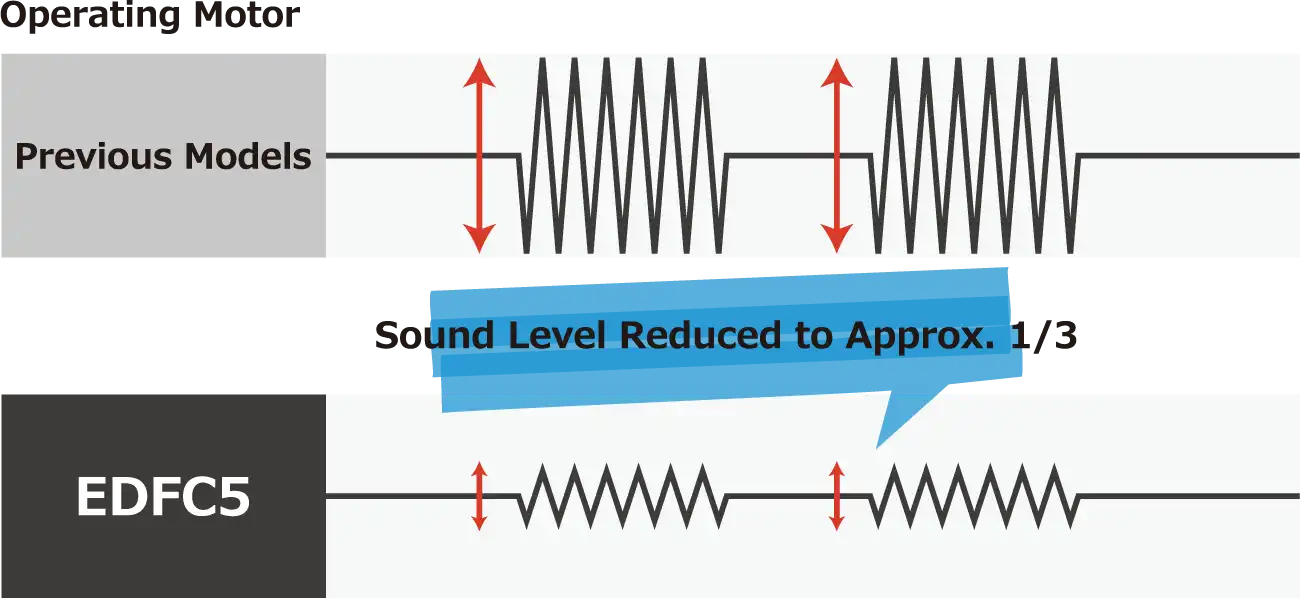 EDFC5 pozwala na zredukowanie hałasu pracy silnika do około 1/3 w porównaniu do poprzednich modeli EDFC, aby utrzymać poziom ciszy na poziomie części/komponentów OE. Jednostka sterująca wykorzystuje nowe podejście do redukcji dźwięku, dzięki czemu istniejące silniki mogą być używane bez zmian.